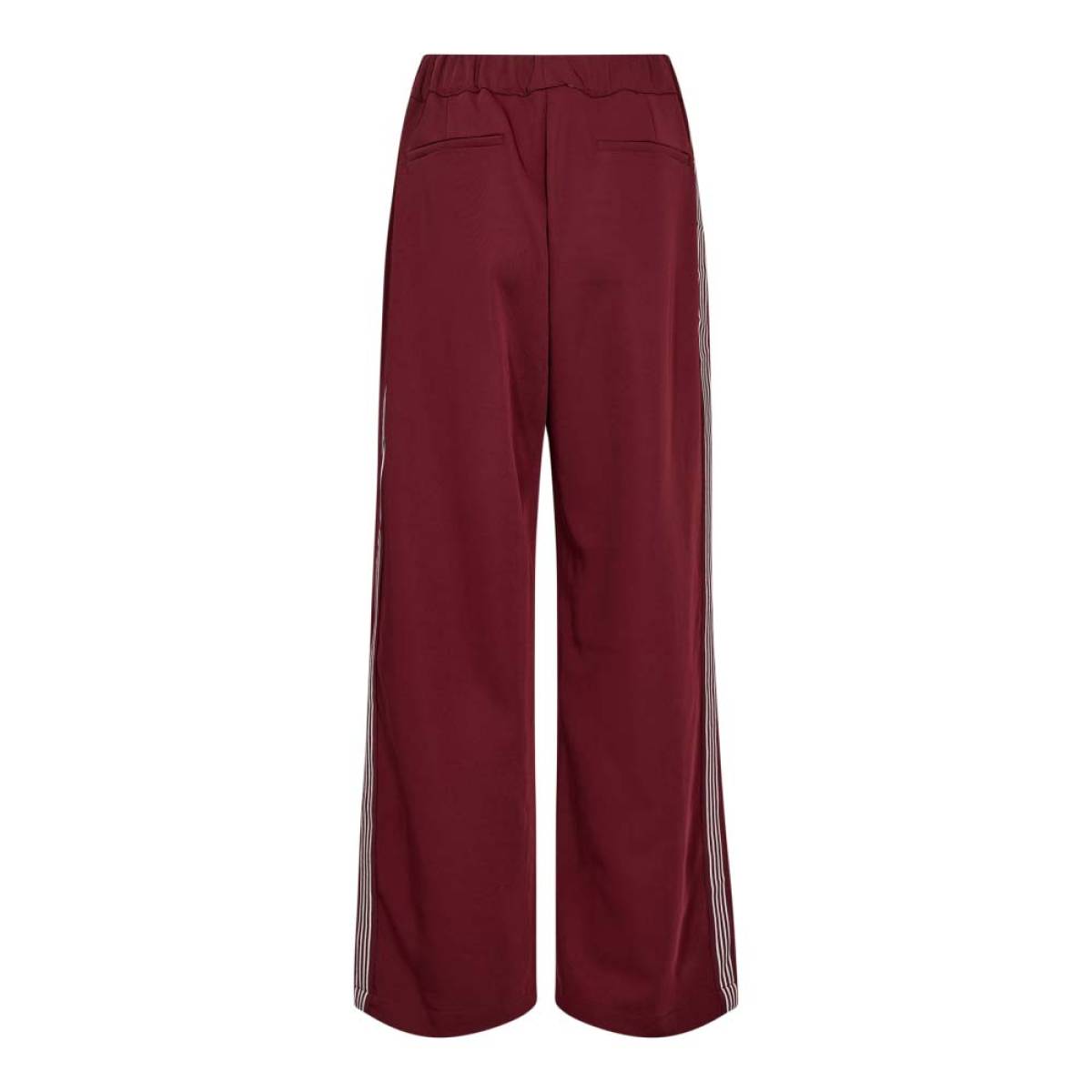 Verrijk je garderobe met de stijlvolle Amina crease pants in een rijke bordeaux kleur van Co’Couture. Deze wijde broek is gemaakt van een comfortabele blend van 97% polyester en 3% elastaan. De opvallende witte bies aan de zijkant voegt een speels detail toe aan dit tijdloze ontwerp. Perfect voor zowel casual als chique gelegenheden.