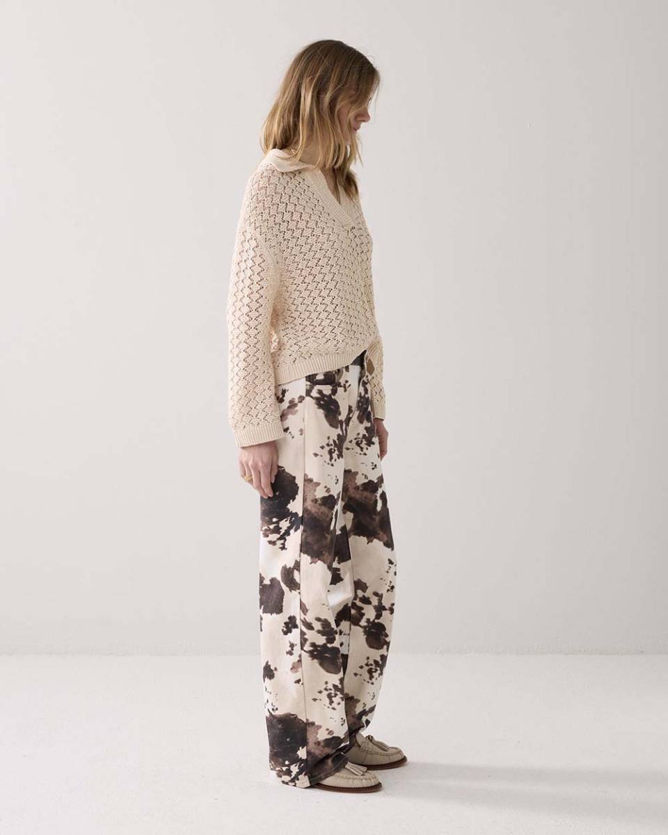 SUMMUM WOMAN – Baggy straight pant cow printed twill multi Summum – BESTELR: 4S2956-12435-