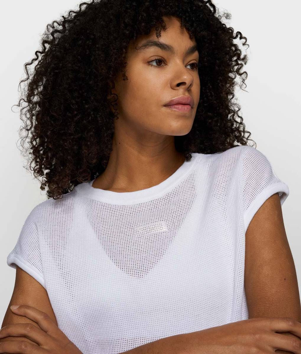 De Balloon Top is ontworpen met een flatterende snit die zich mooi om het lichaam vormt. Dankzij de lichte en luchtige structuur van het mesh-materiaal biedt deze top niet alleen comfort, maar ook een unieke stijl. De subtiele ballonvorm voegt een speelse touch toe aan jouw outfit, terwijl de neutrale witte kleur ervoor zorgt dat je hem gemakkelijk kunt combineren met andere stukken in je garderobe.