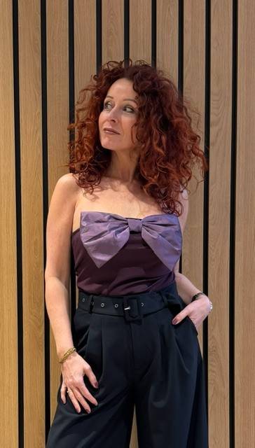 De CO’ COUTURE Barry Bow Top in een prachtige pruimkleur is een stijlvolle en eigentijdse keuze voor de moderne vrouw. Gemaakt van een hoogwaardige mix van polyamide, katoen en elastaan, biedt deze top een comfortabele en flatterende pasvorm. Perfect voor zowel casual als chique gelegenheden, voegt de elegante strikdetail een verfijnde touch toe aan je garderobe. Bestelnummer: 35345-67.