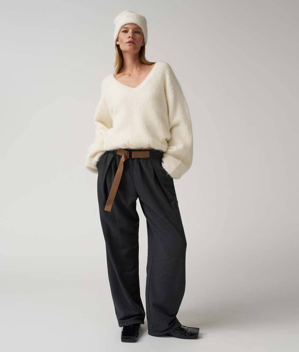 Met de antracietkleurige tint en het verfijnde ontwerp, straalt deze Belt Jogger een moeiteloze chicheid uit. De tailleband met riem maakt het mogelijk om een perfecte pasvorm te creëren, terwijl je je look naar je eigen smaak kunt personaliseren. De subtiele stiksels en hoogwaardige afwerking geven deze jogger een extra dimensie van finesse.