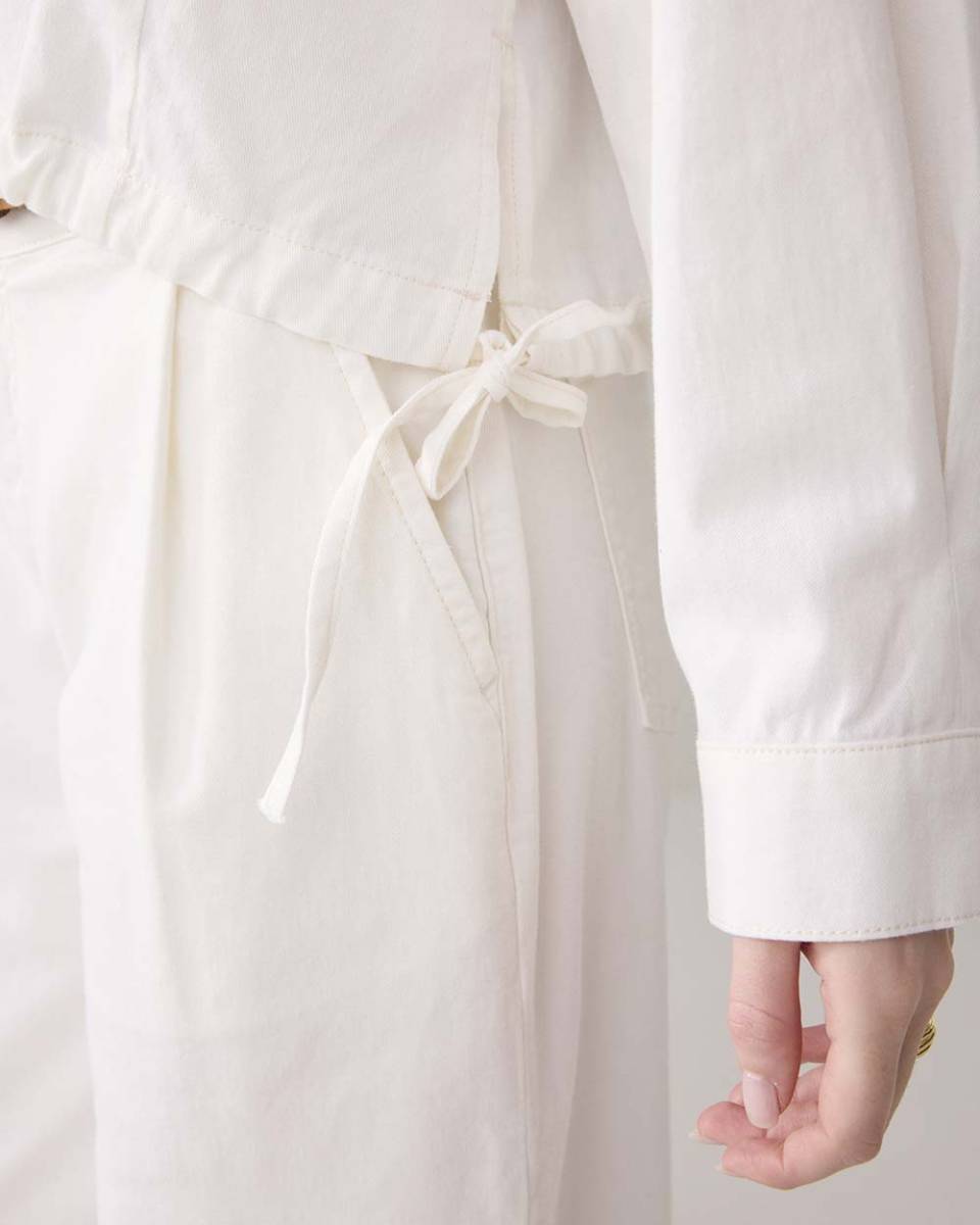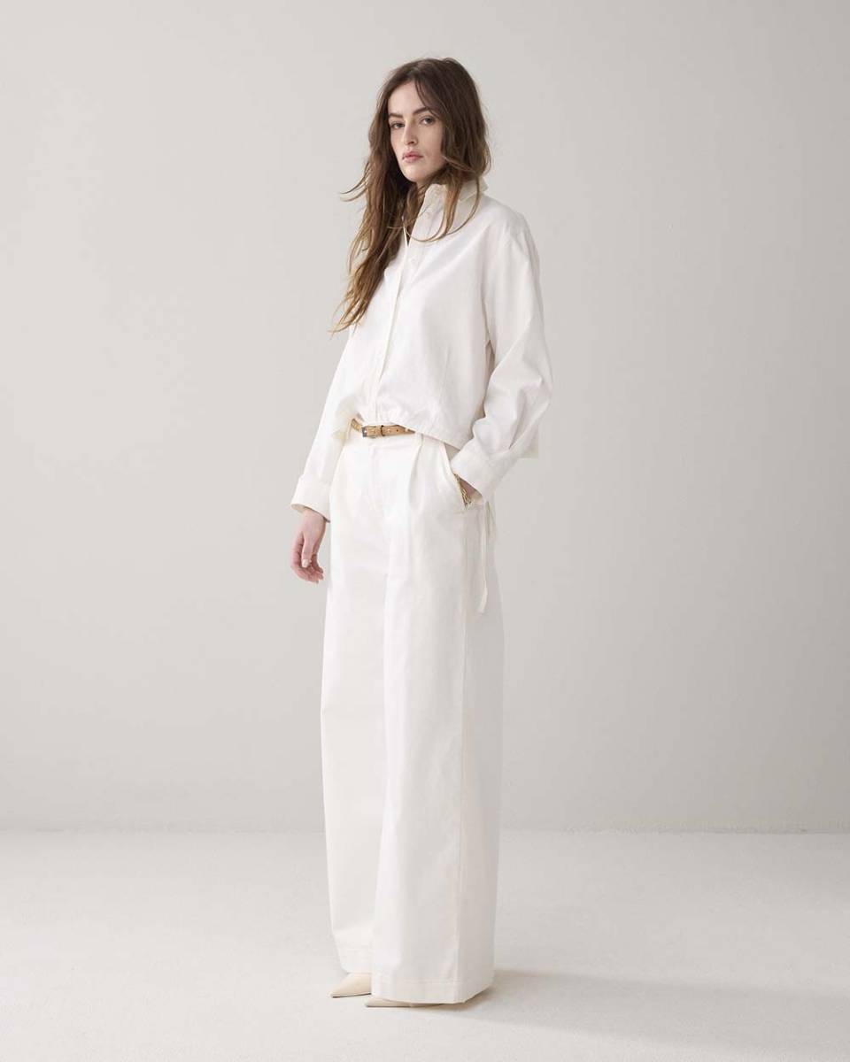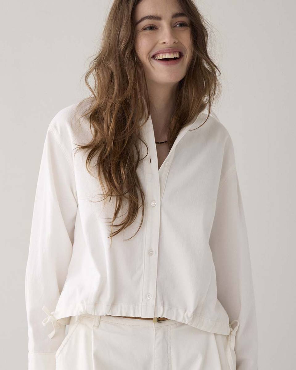 Deze blouse is gemaakt van hoogwaardig cotton twill, wat niet alleen zorgt voor een luxe uitstraling, maar ook voor een duurzame en comfortabele draagervaring. Het materiaal voelt zacht aan op de huid en biedt de perfecte balans tussen stijl en functionaliteit.