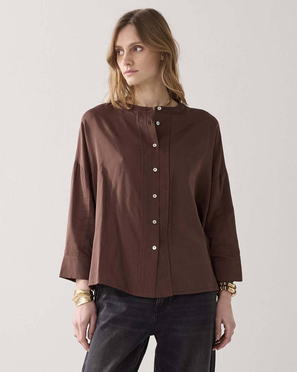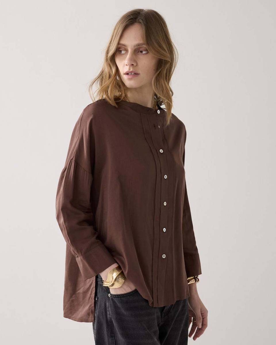 SUMMUM WOMAN – Blouse viscose cotton coffee Summum – BESTELR: 2S3403-12370-