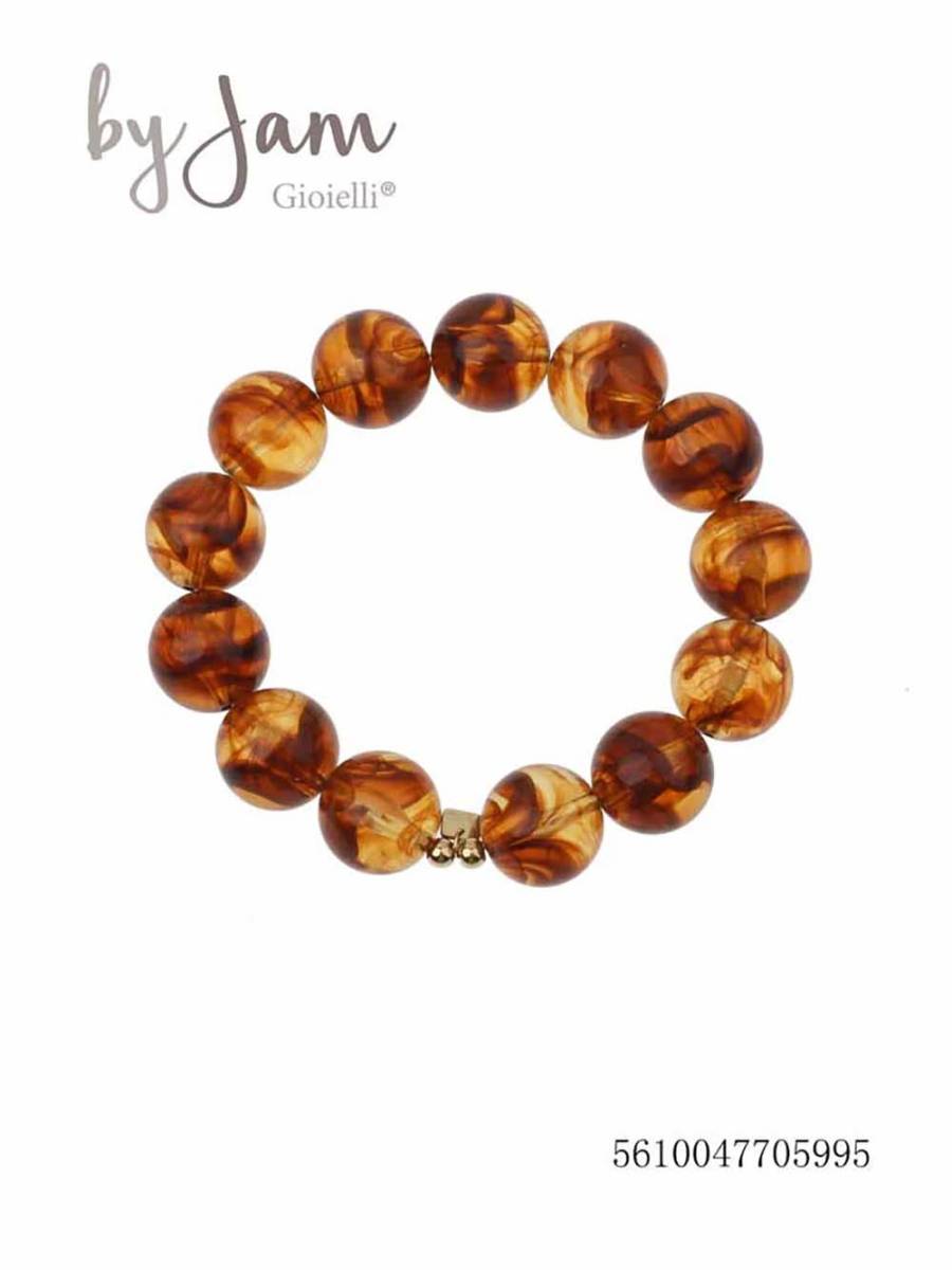Stijlvolle bruine armband van By Jam Gioielli, gemaakt van hoogwaardige kralen en voorzien van een elegant gouden stainless steel slotje. Perfect voor elke gelegenheid!