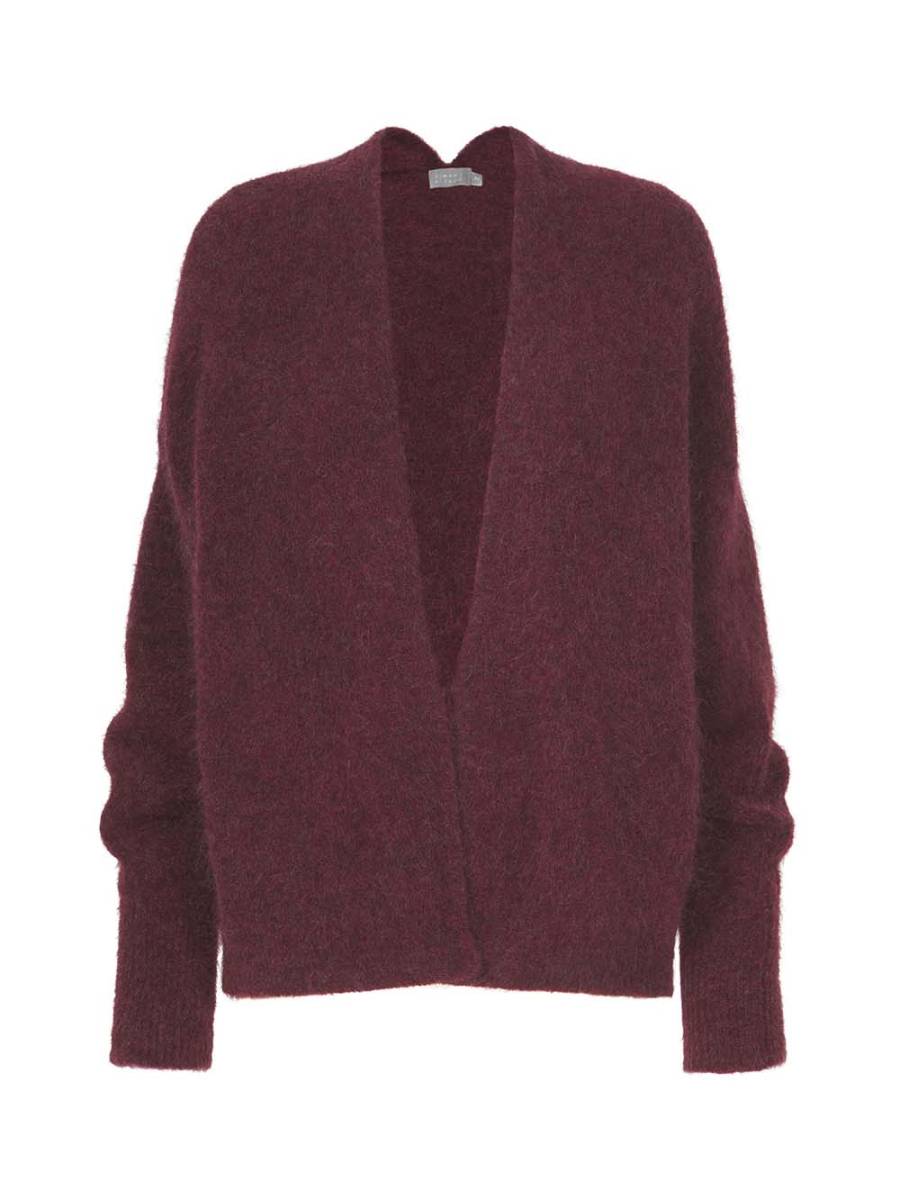 De cardigan heeft zorgvuldig afgewerkte boorden en een subtiele knoopsluiting aan de voorkant, wat bijdraagt aan de luxe uitstraling. Daarnaast zorgen de verlaagde schoudernaden voor een moderne look.