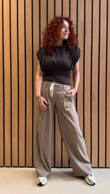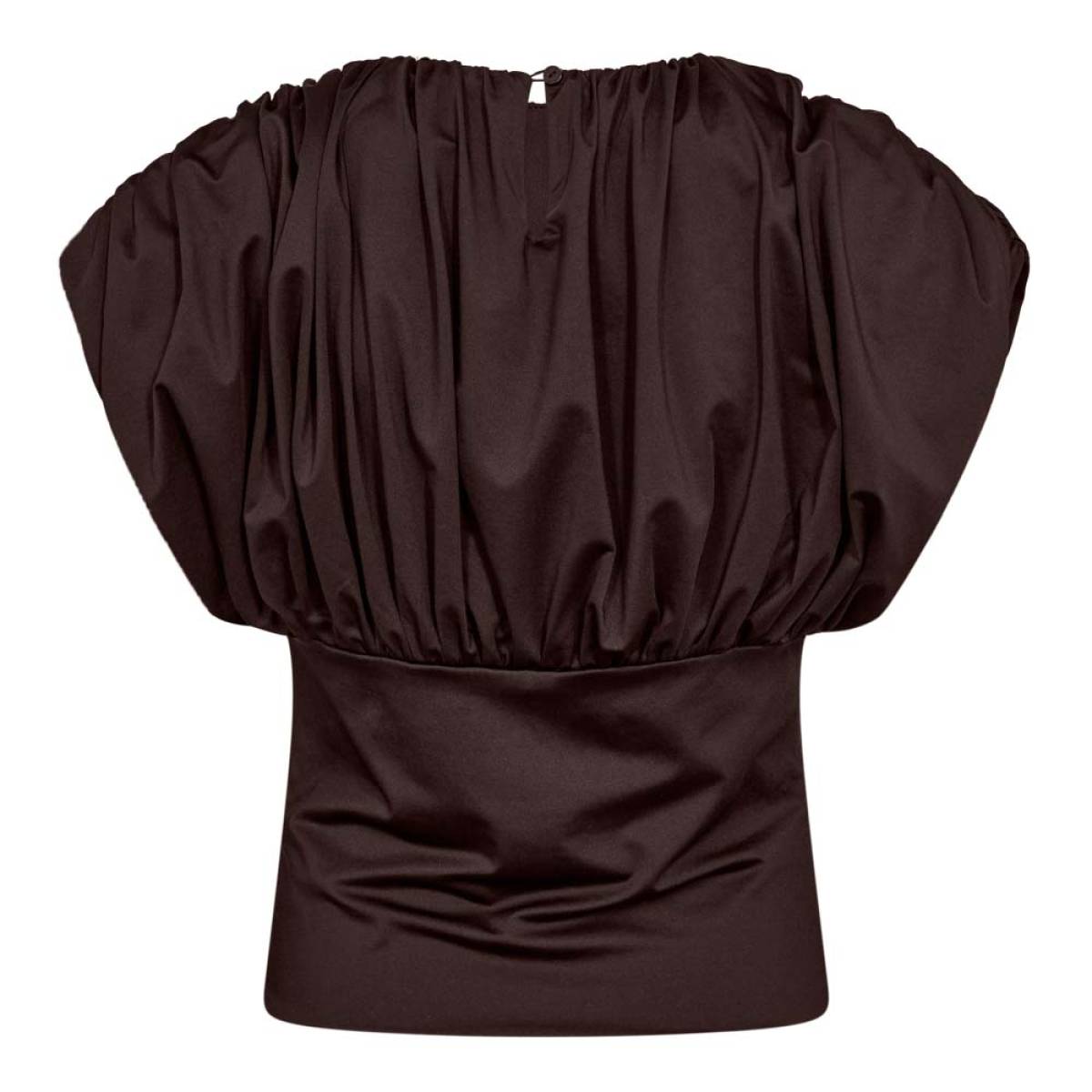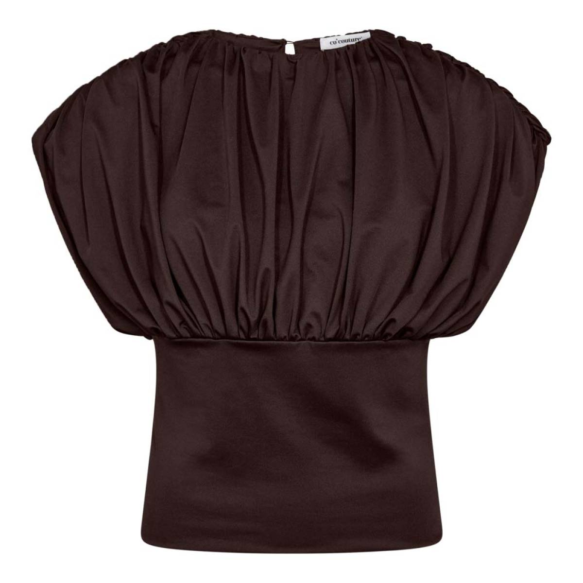 Stijlvolle Cattia top van CO’ COUTURE in een verfijnde donkere bruintint. Deze top is gemaakt van een comfortabele mix van 90% polyester en 10% elastaan. De ronde hals en elegante plooien aan de bovenkant zorgen voor een chique uitstraling, perfect voor zowel zakelijke als informele gelegenheden.