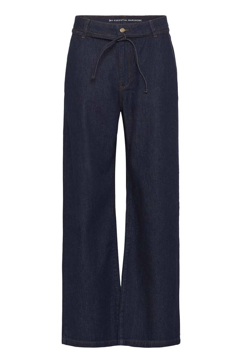 Upgrade je garderobe met de Cleo jeans van My Essential Wardrobe. Deze stijlvolle damesbroek is uitgevoerd in een donkere blauwe tint en biedt een flatterende mid-rise pasvorm met wijde pijpen. Gemaakt van 100% katoen, garandeert het comfort en duurzaamheid. Een tijdloze must-have voor elke fashionista.