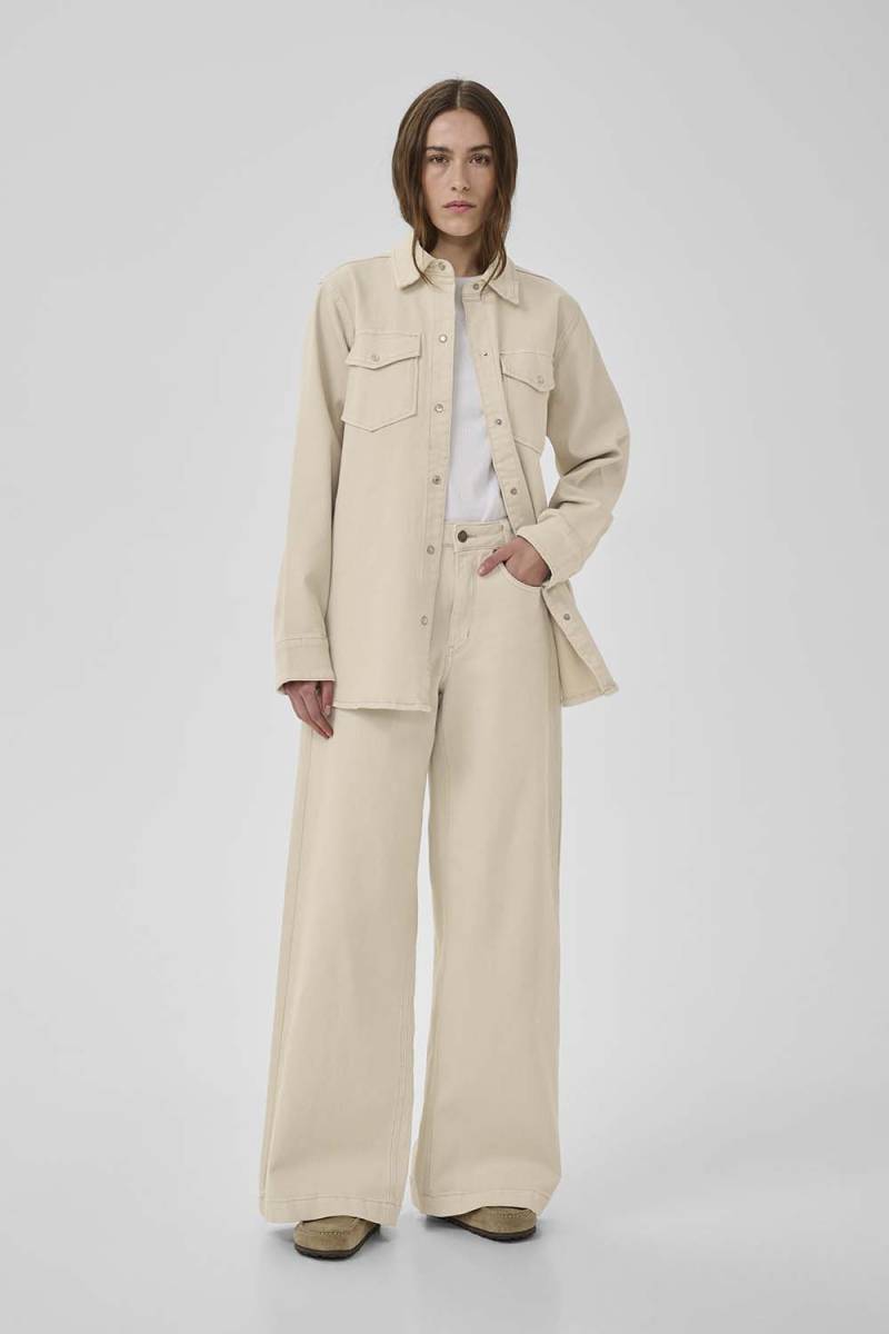 De My Essential Wardrobe Dango 157 high X-wide 34 broek is ontworpen om zowel stijl als comfort te bieden. Met de hoge taille en oversized pasvorm zorgt deze broek voor een eigentijdse look die perfect is voor allerlei gelegenheden. De lichte oatmeal kleur maakt het een veelzijdig kledingstuk dat gemakkelijk te combineren is met diverse tops.