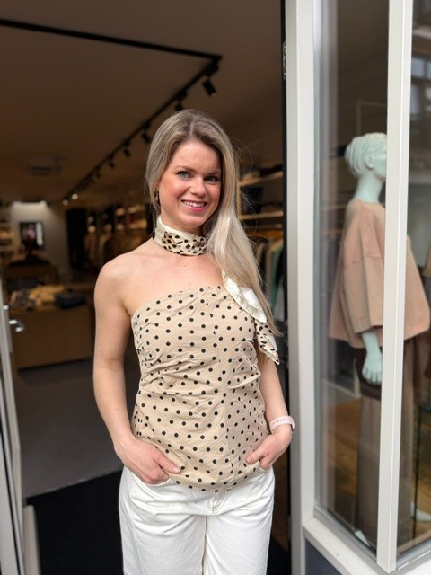 Met zijn subtiele stippenpatroon biedt de Diddi Dot Corsage Top een trendy uitstraling zonder te overheersen. Hierdoor kan het perfect gedragen worden bij feestelijke gelegenheden maar ook als onderdeel van een casual outfit.