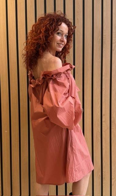 Deze opvallende jurk in Etruskisch rood van Essentiel Antwerp combineert comfort en stijl met een oversized pasvorm en een elegant strikdetail. Gemaakt van een hoogwaardige katoenen en polyamide mix, is het de perfecte keuze voor moeiteloos chique look.