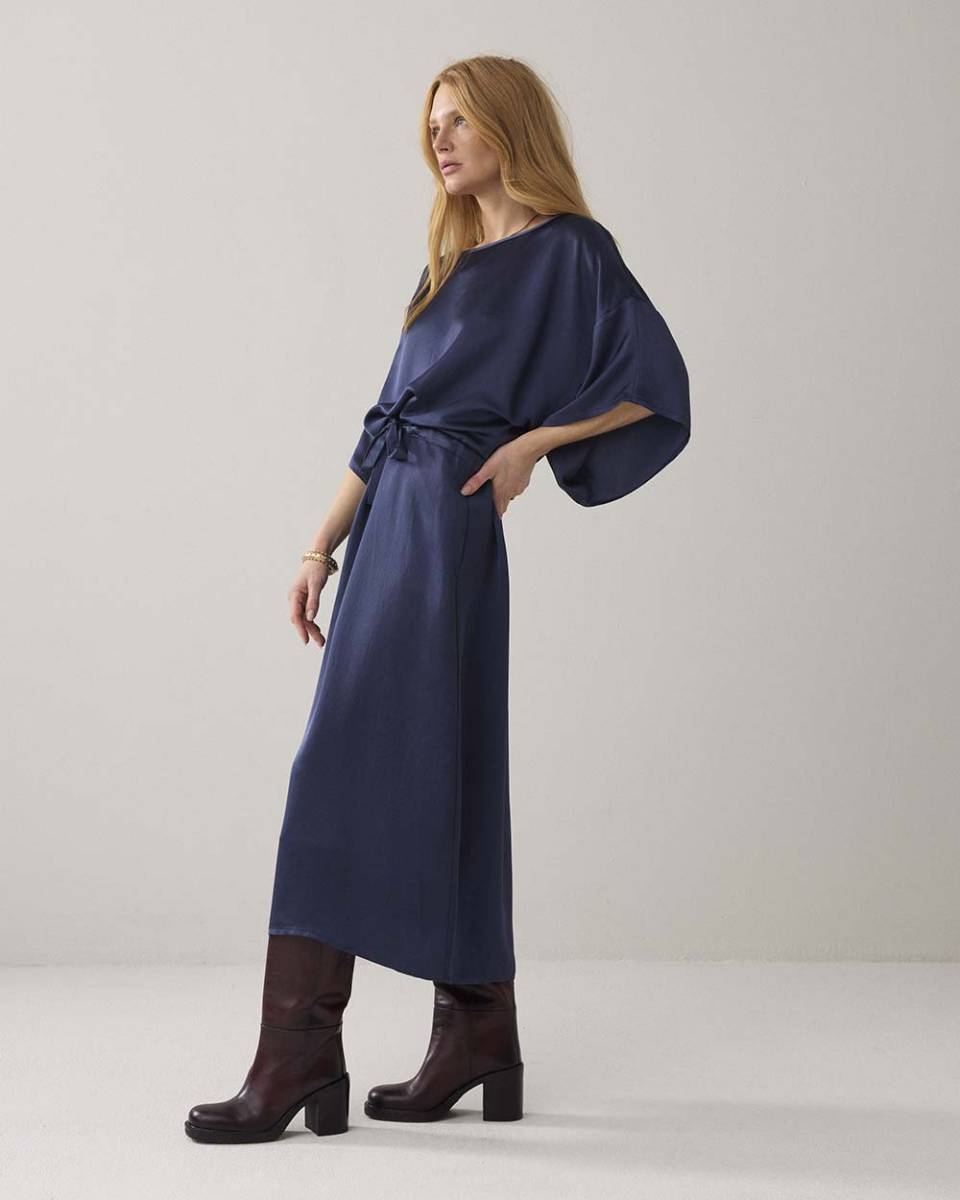 De SUMMUM WOMAN Dress in navy noir is ontworpen met een verfijnde en zware silky touch die je stijlvol en elegant laat voelen. Deze jurk biedt zowel comfort als stijl, waardoor het de perfecte keuze is voor diverse gelegenheden, van een chique diner tot een zakelijke bijeenkomst.