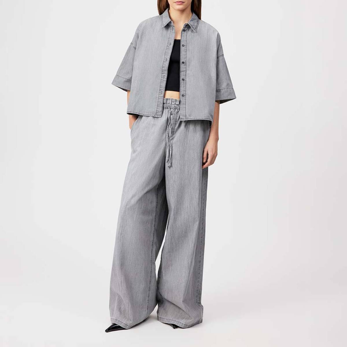 Ontdek de tijdloze charme van de DRYKORN Dwindle wijde pantalon in een verfijnde grijze tint. Deze prachtige pantalon combineert moeiteloos elegantie en comfort, waardoor het de perfecte aanvulling is op je garderobe. De wijde pasvorm zorgt voor een luchtige uitstraling, terwijl de kleur veelzijdigheid biedt, waardoor het eenvoudig te combineren is met verschillende tops en accessoires.