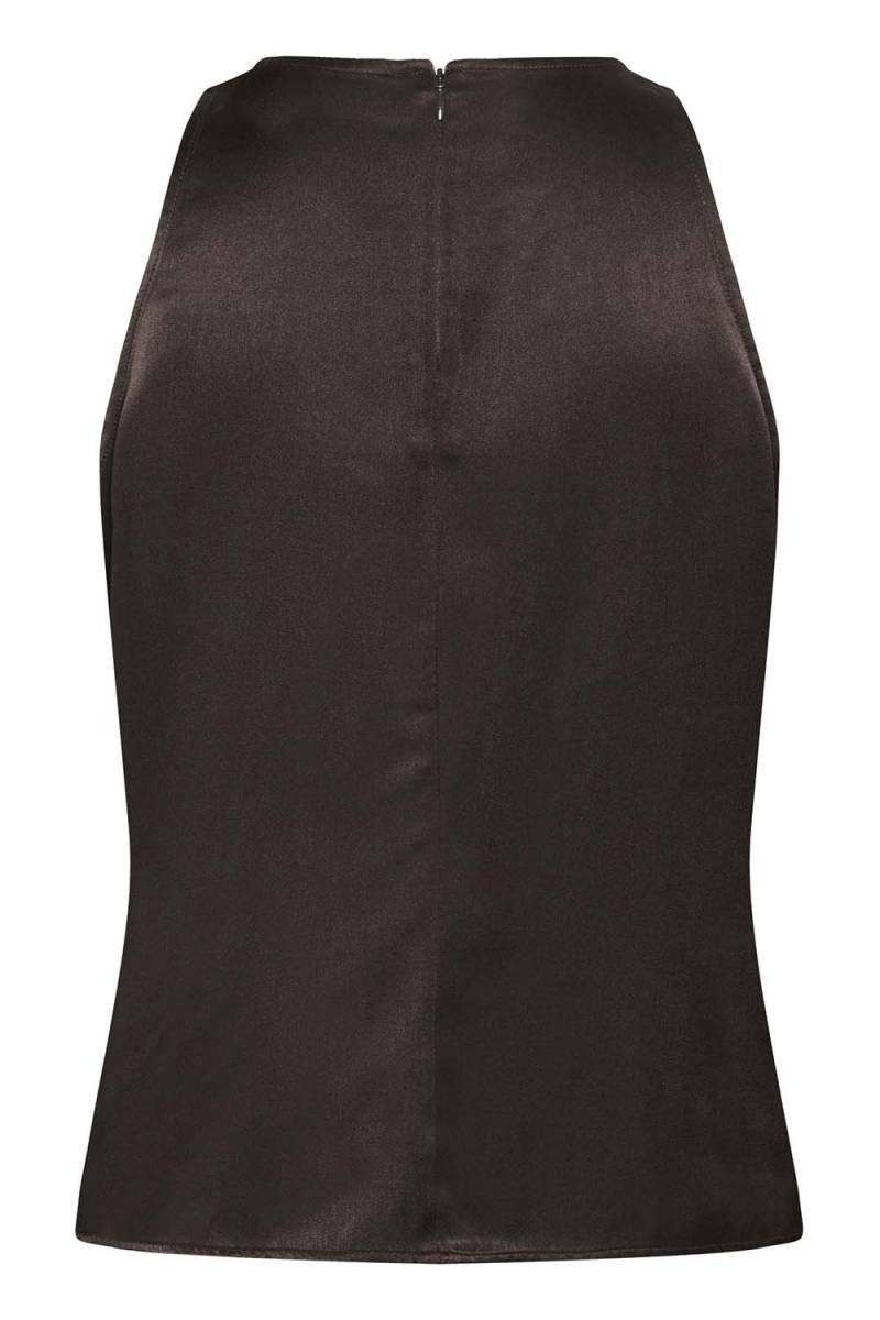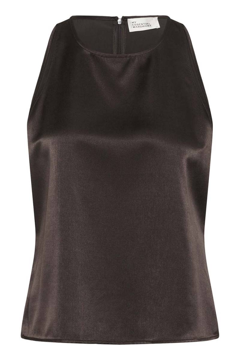 De Estelle top in espresso van My Essential Wardrobe biedt een elegante uitstraling met zijn vrouwelijke A-lijn silhouet en mouwloos design. Gemaakt van duurzame LENZING™ ECOVERO™ viscose en polyester, is deze top perfect voor zowel casual als chique gelegenheden. Voeg een vleugje verfijning toe aan je garderobe met deze veelzijdige top.