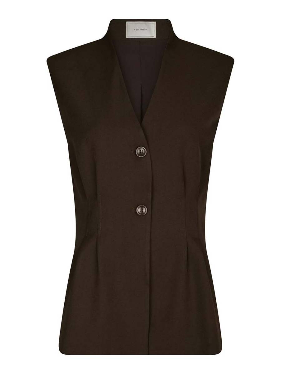 De NEO NOIR Finna Structure gilet in het donkerbruin is perfect voor wie op zoek is naar een verfijnde aanvulling op de garderobe. Dit gilet kenmerkt zich door zijn getailleerde ontwerp dat je figuur op subtiele wijze accentueert. De elegante V-hals en de tweeknopsluiting aan de voorzijde voegen een klassieke touch toe aan het moderne ontwerp.