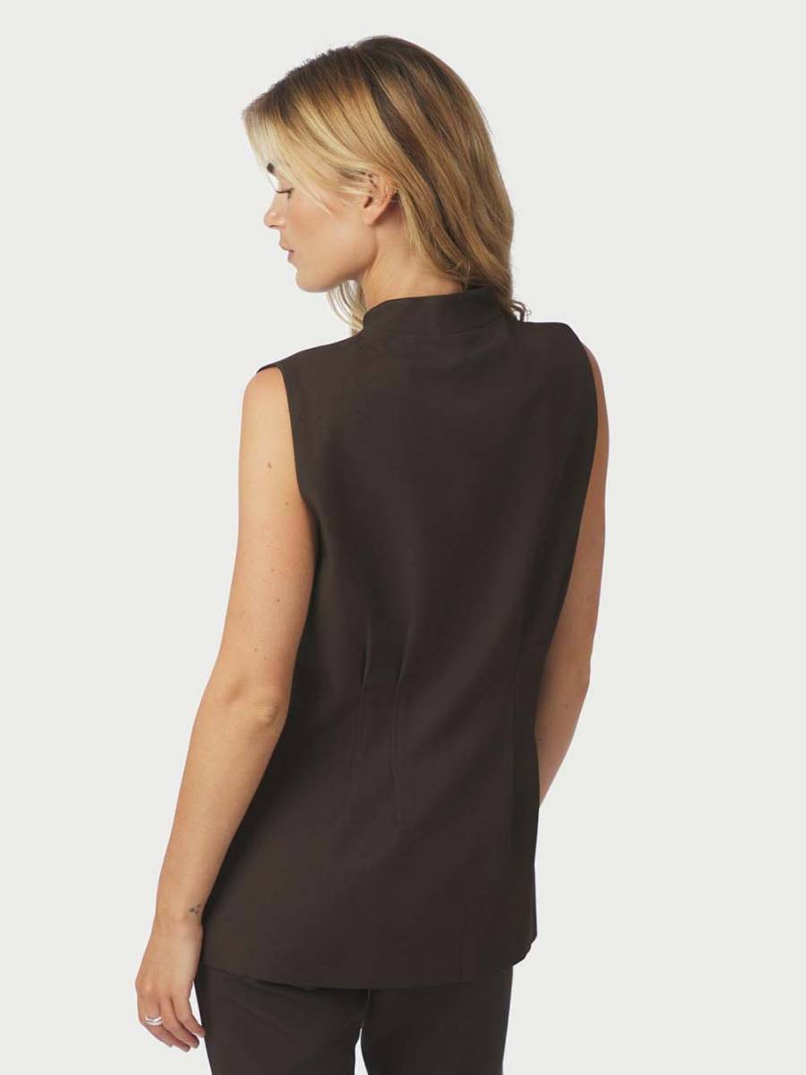 Ontworpen met oog voor detail, biedt dit gilet een structuur die zowel visueel als tastbaar aantrekkelijk is. De donkere bruine tint zorgt voor een tijdloze uitstraling waarbij je eindeloos kunt combineren met je bestaande kledingstukken.