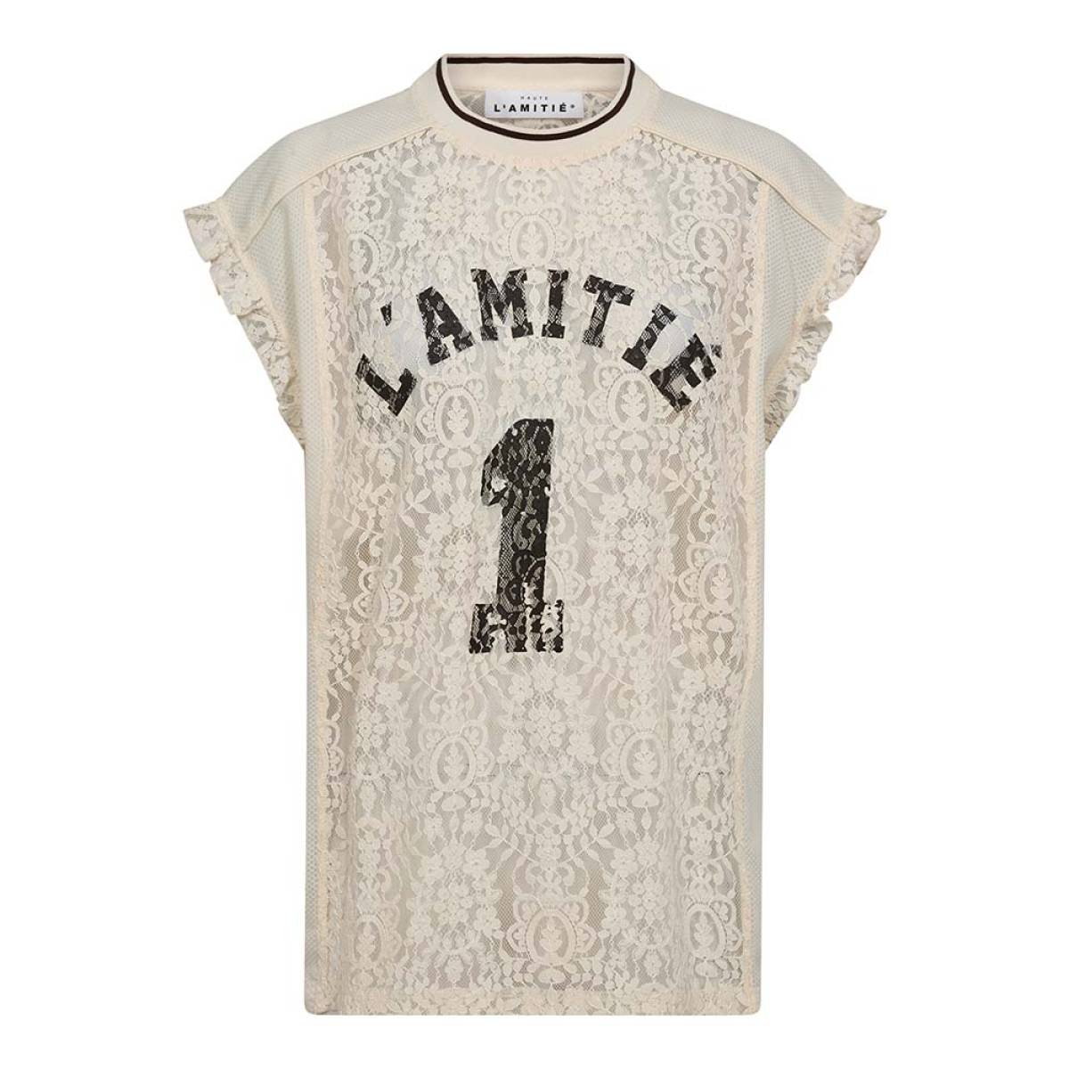 Deze stijlvolle dames top van Haute L’Amitie is perfect voor een moderne en sportieve look. De Football lace frill top in een elegante pareltint combineert comfort met een vleugje luxe. Gemaakt van een zachte katoenen mix en voorzien van prachtige kanten details. Ideaal voor elke gelegenheid waar mode en gemak samenkomen.