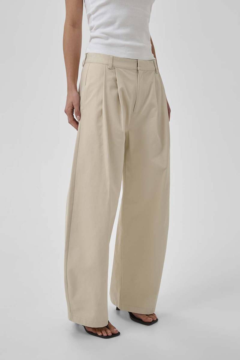 De My Essential Wardrobe Gisva Pant is de perfecte aanvulling voor een stijlvolle garderobe. Uitgevoerd in een zachte oatmeal kleur, biedt deze lange broek een comfortabele pasvorm dankzij de 100% katoenen stof. Perfect voor zowel casual als chic outfits, deze broek is een veelzijdige must-have. Voeg nu een vleugje stijlvolle eenvoud toe aan je garderobe.