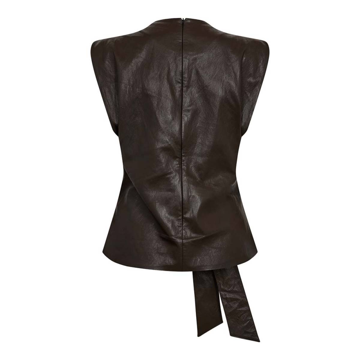 De Gitt pleat top van CO’COUTURE in een donkere bruine tint is een stijlvolle aanvulling op je garderobe. Deze mouwloze top is gemaakt van 100% polyurethaan, wat zorgt voor een luxe uitstraling en zachte feel. Het opvallende strikdetail geeft een speels en elegant accent, perfect voor zowel casual als feestelijke gelegenheden. Bestelnummer 35958-145.