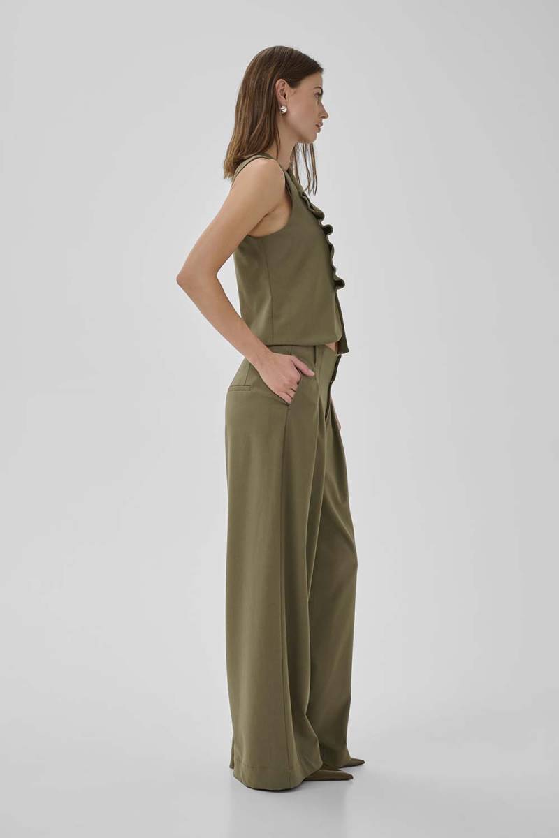 De Hace Sille High Wide Pant van My Essential Wardrobe biedt een prachtige combinatie van elegantie en comfort. Met een hoge taille en wijde pijpen zijn deze broeken perfect voor een verfijnde en modieuze uitstraling. De subtiele groene kleur, bekend als ‘capers’, voegt een stijlvolle touch toe aan elke outfit.