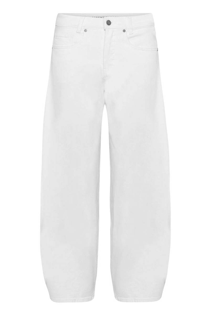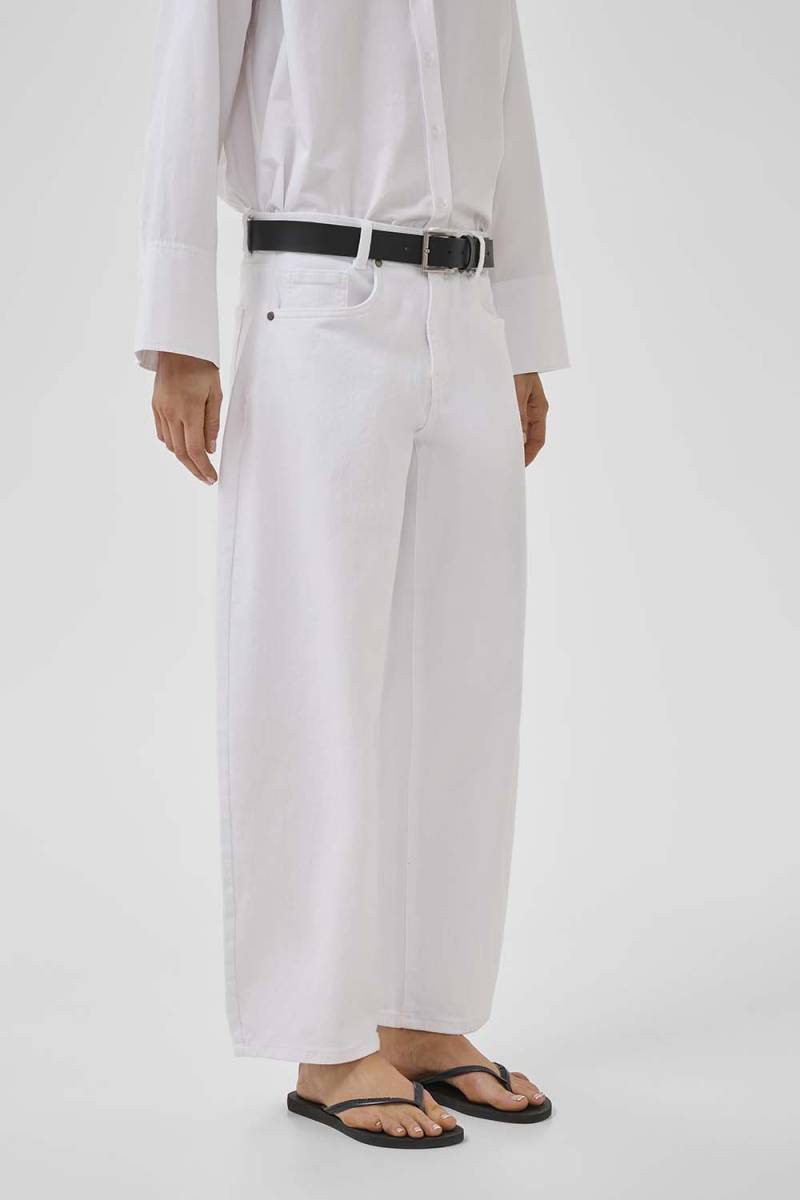 Deze high barrel broek valt op door zijn moderne en elegante esthetiek. De subtiele details en de helderwitte kleur zorgen ervoor dat de broek gemakkelijk te combineren is met diverse tops en accessoires. Draag hem met een nette blouse voor een chique look of combineer hem met een casual T-shirt voor een ontspannen uitstraling.