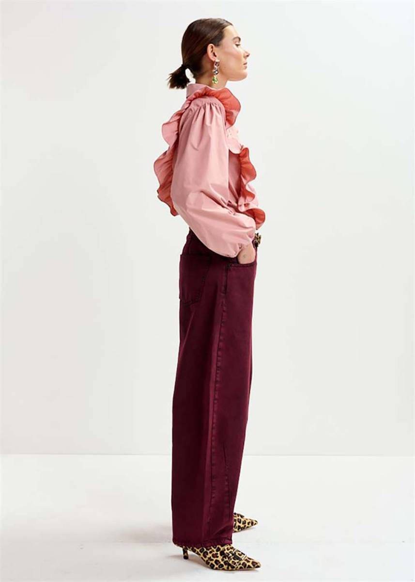 Ontdek de unieke stijl van de Impressive overdye jeans van Essentiel Antwerp, ontworpen in de opvallende kleur margot mauve. Deze jeans biedt een perfecte combinatie van comfort en mode, ideaal voor de moderne vrouw die een gedurfde look wil creëren.
