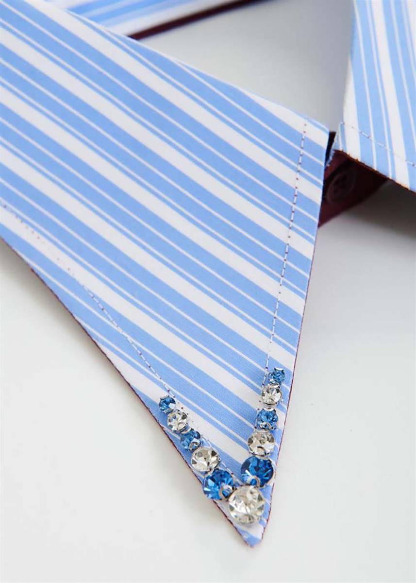 De stijlvolle blauw/witte combinatie is zowel modern als tijdloos, waardoor je deze kraag eenvoudig kunt combineren met verschillende outfits. Draag hem over een eenvoudige blouse voor een elegante touch of als extra detail onder een trui voor een gelaagd effect.