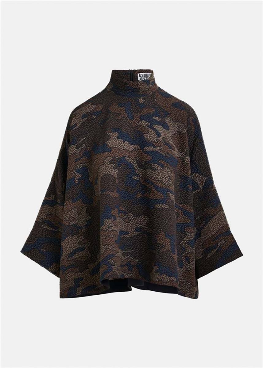 De Iscratch wide sleeved top van Essentiel Antwerp is een stijlvolle toevoeging aan je garderobe. Deze top heeft een oversized fit die zorgt voor een moderne en comfortabele look. De opstaande kraag voegt een extra vleugje elegantie toe, terwijl de taupe bruine print je outfit een speelse uitstraling geeft.