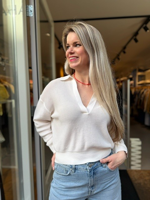 Het DRYKORN Jorgia gebreide poloshirt voor dames is de perfecte keuze voor een stijlvolle, casual look. Gemaakt van 100% katoen, biedt het shirt ultiem comfort. De off white kleur en de casual kraag voegen een vleugje elegantie toe, terwijl de cropped lengte een moderne twist geeft aan dit klassieke ontwerp. Perfect te combineren met zowel jeans als rok voor een veelzijdige outfit.