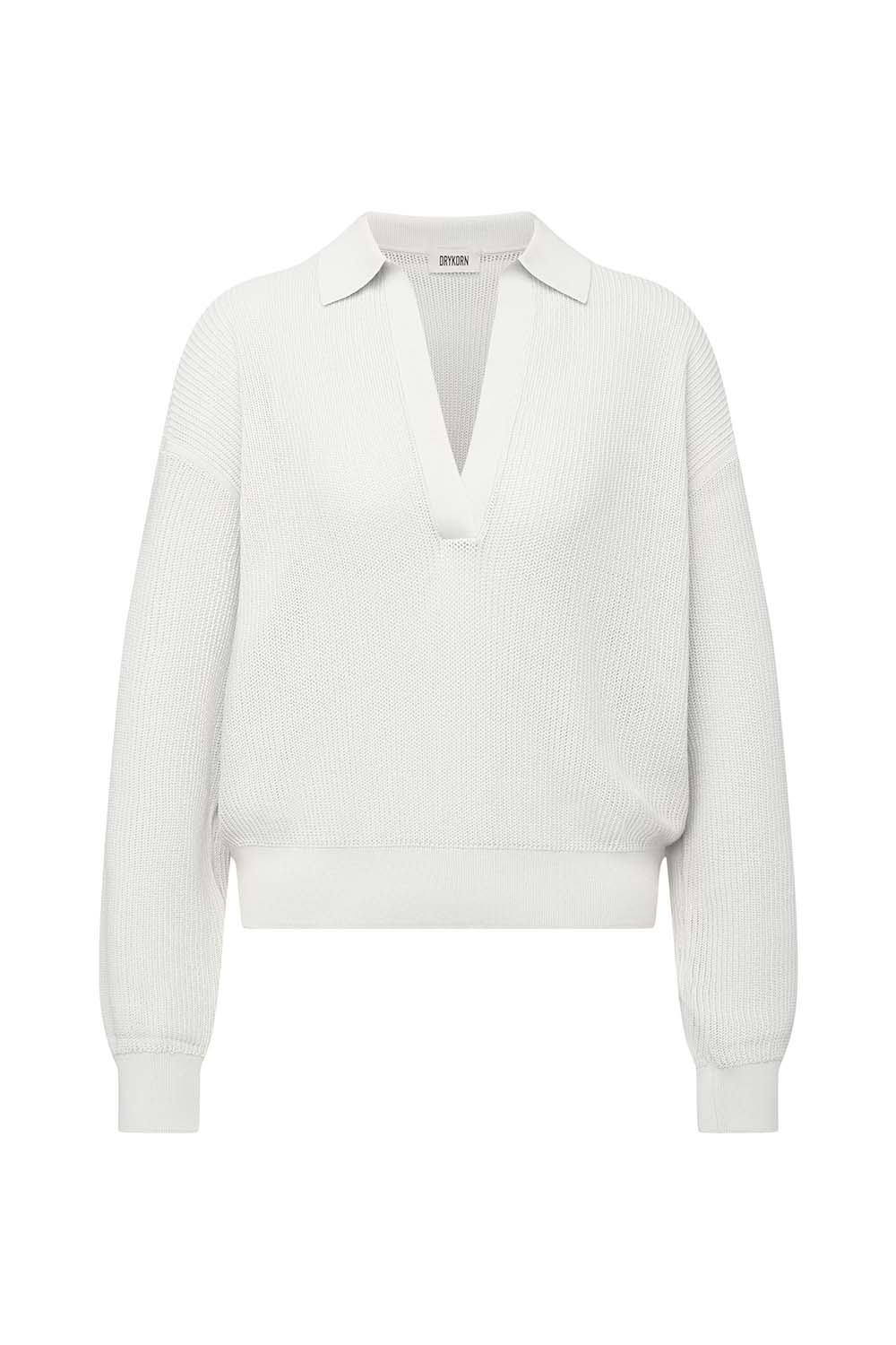 De Jorgia gebreid poloshirt van DRYKORN is de perfecte combinatie van stijl en casual comfort. Met zijn off white tint is dit poloshirt een veelzijdige aanvulling op elke garderobe. Het biedt een elegante uitstraling die zowel voor informele als semi-formele gelegenheden een goede keuze is.