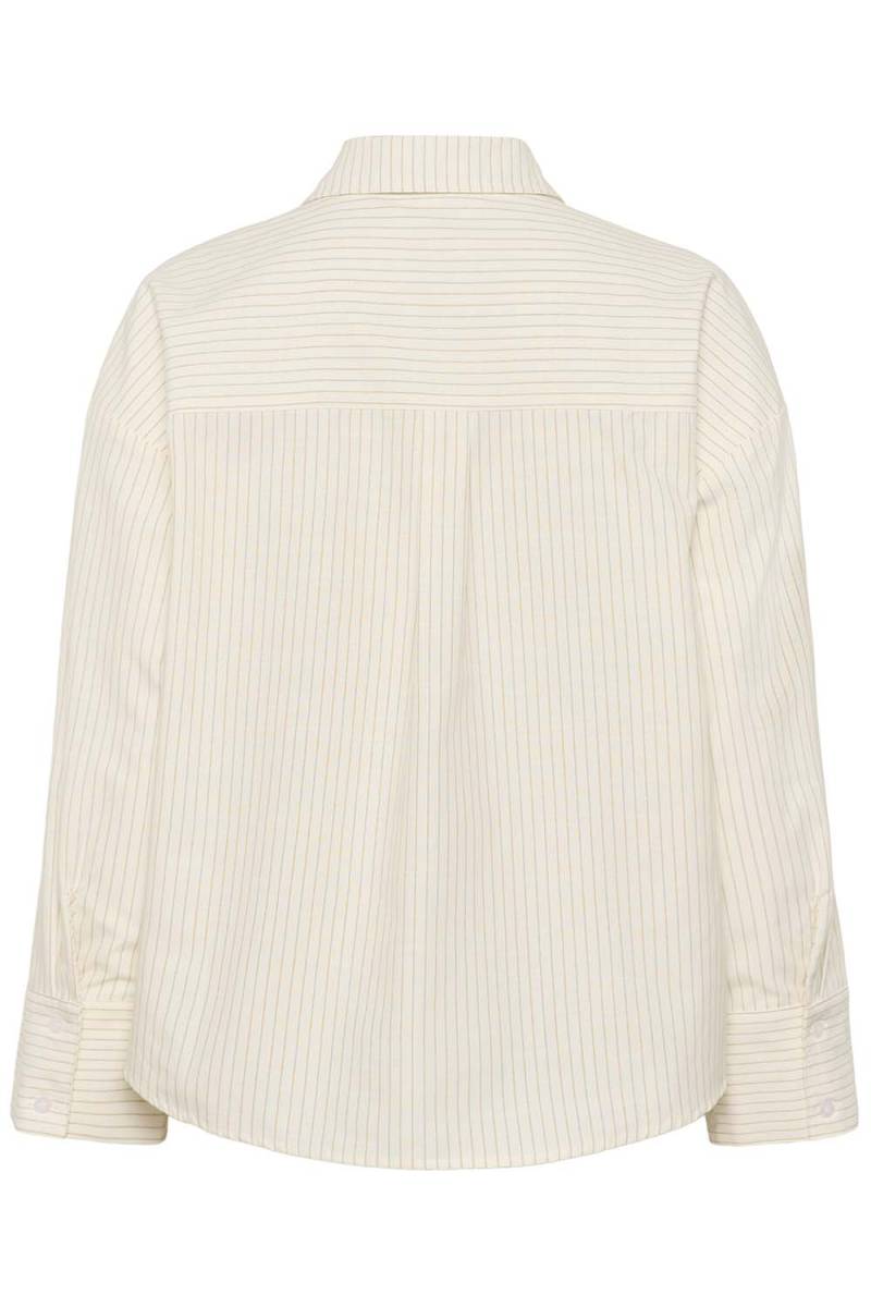 Stijlvolle en veelzijdige dames blouse van My Essential Wardrobe in een frisse sneeuw witte kleur met subtiele beige streep. Gemaakt van een comfortabele mix van 65% katoen en 35% polyester. De Lennie boxy blouse is een perfecte toevoeging aan elke garderobe.
