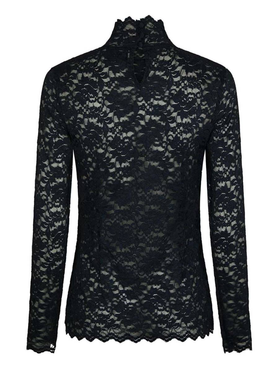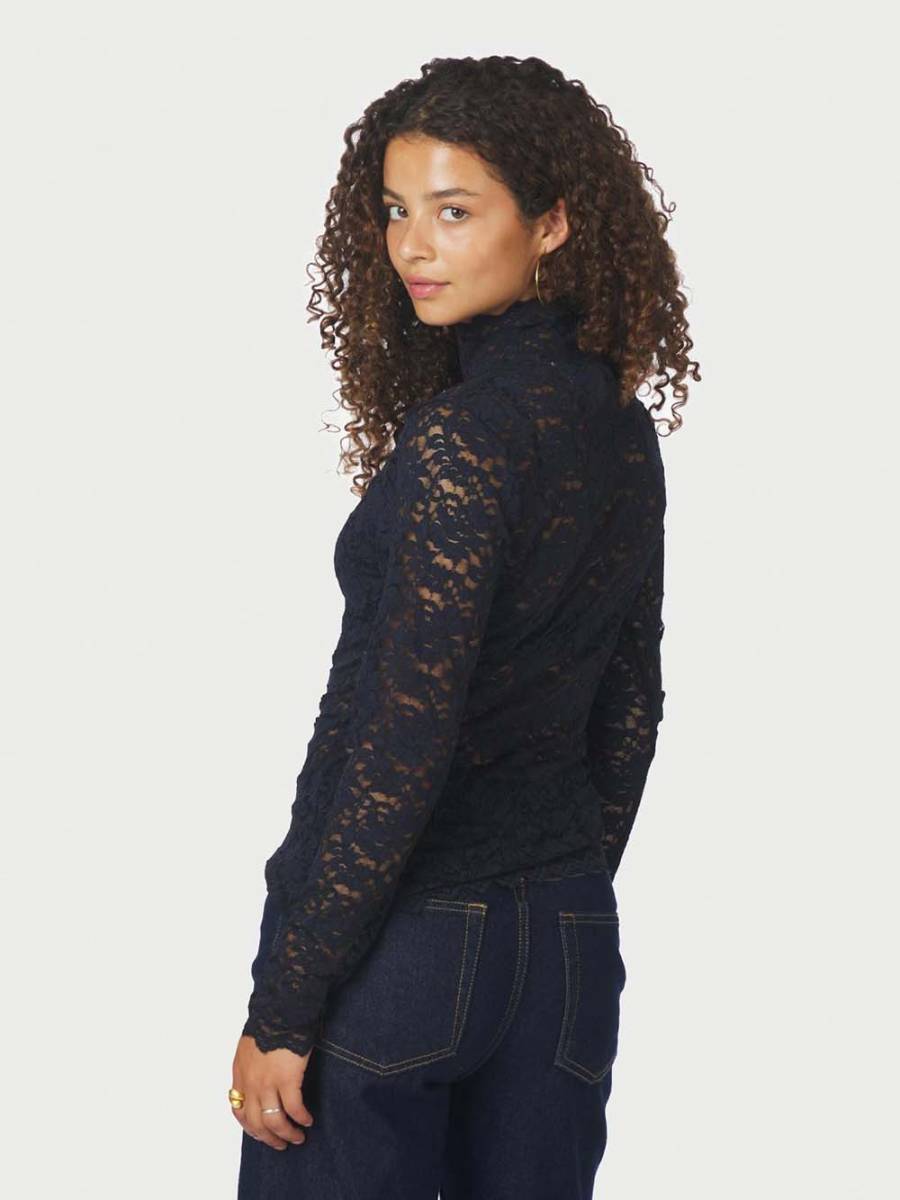 Liza laceflower blouse navy Neo Noir