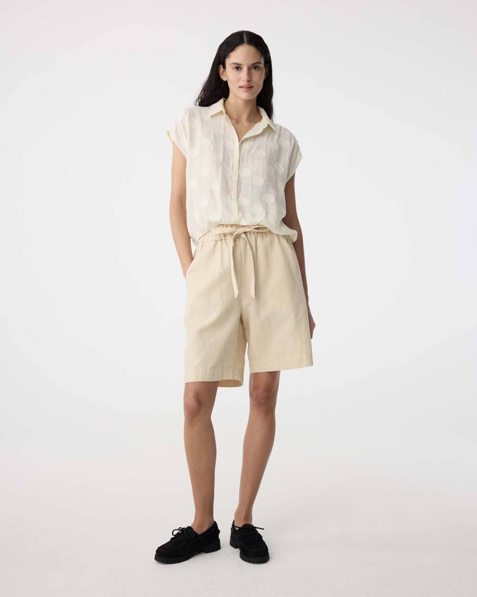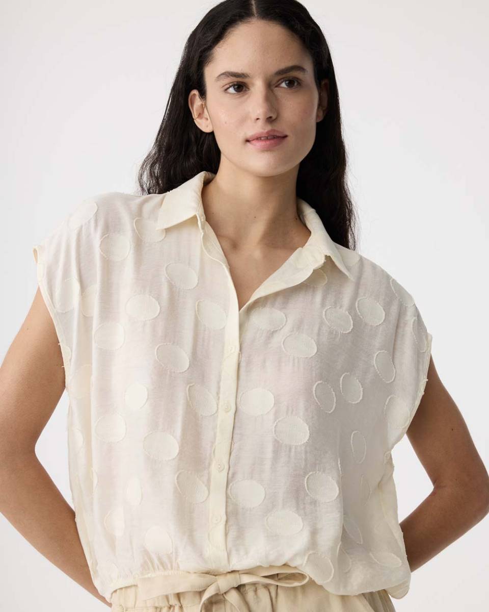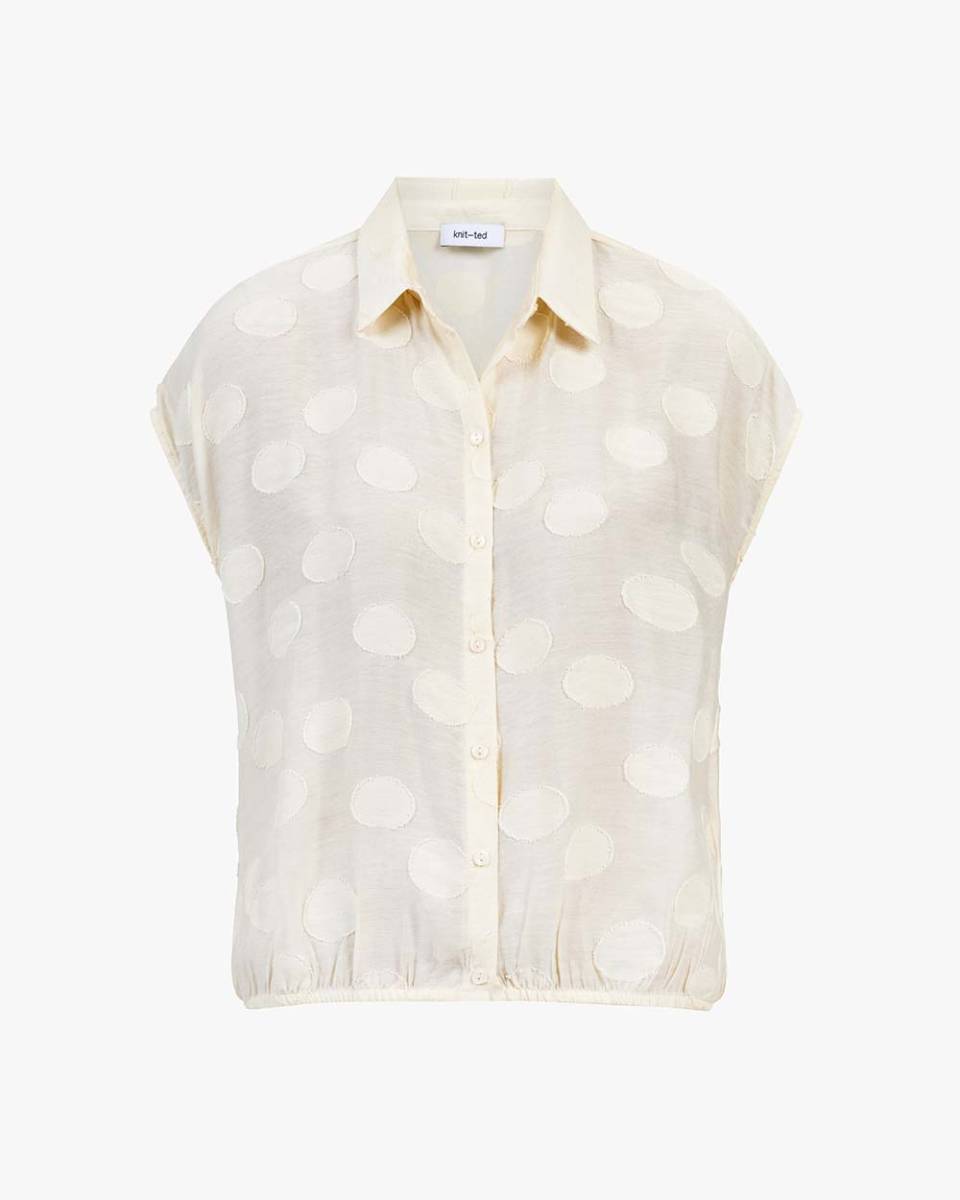 De Lola blouse van Knit-ted brengt een subtiel vleugje elegantie naar je garderobe. Met haar zachte ivory kleur en verfijnde cirkelpatroon is deze blouse een perfecte keuze voor elke gelegenheid. De korte mouwen en kraag geven de blouse een tijdloze en veelzijdige uitstraling.