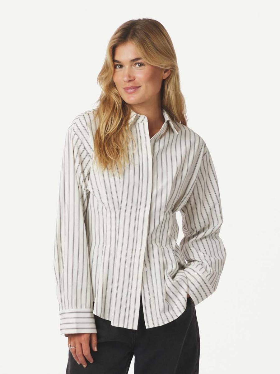 De Lytra Black Stripe Blouse van Neo Noir straalt elegantie uit met zijn verfijnde ecru-kleur en subtiele zwarte strepen. Dit klassieke ontwerp biedt een tijdloze stijl die gemakkelijk te combineren is met zowel casual als formele outfits.