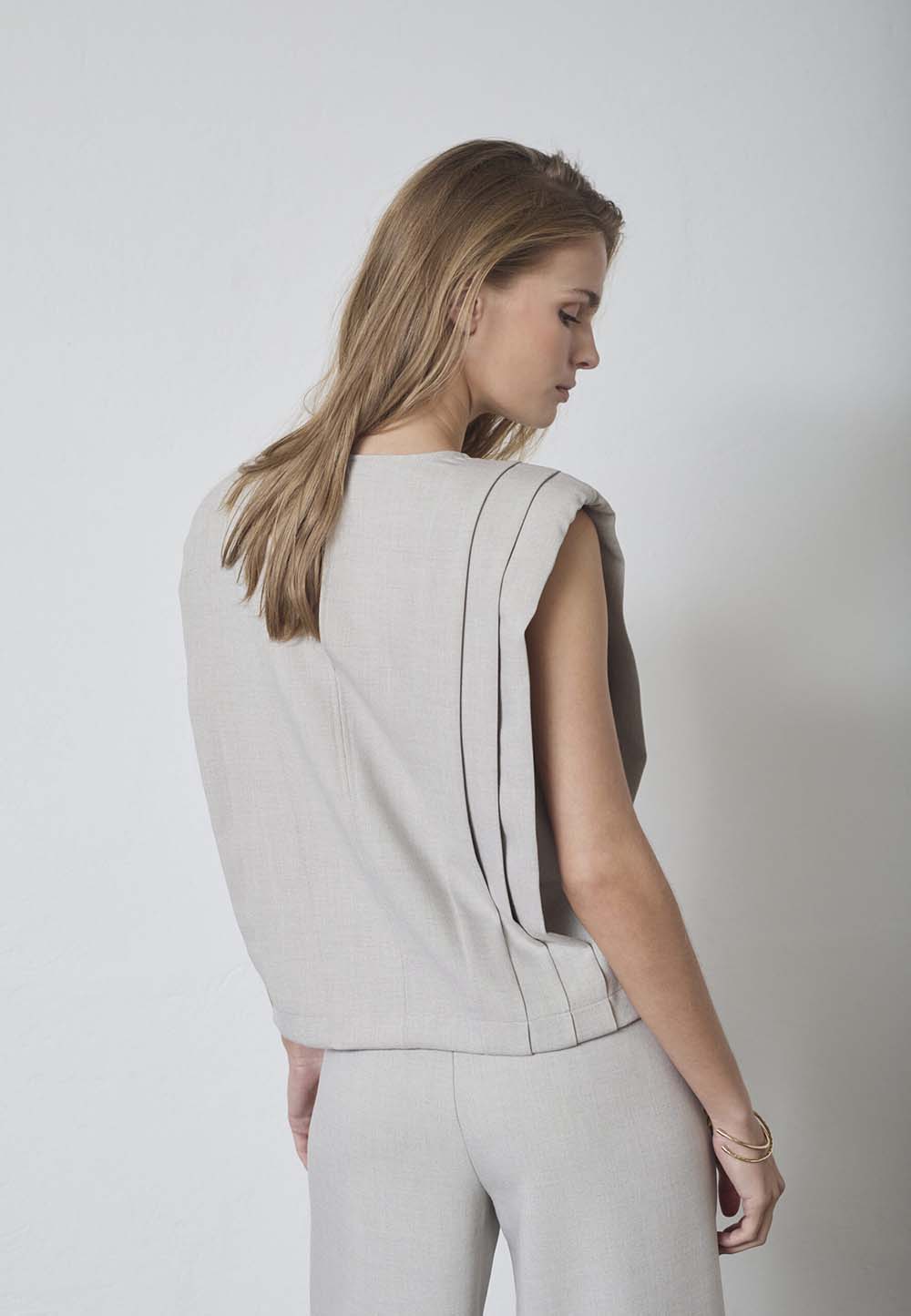 Deze mouwloze top heeft een ronde halslijn en is voorzien van speelse plooien die het geheel een unieke uitstraling geven. De minimalistische snit zorgt ervoor dat deze top moeiteloos kan worden gecombineerd met zowel casual als meer geklede outfits. De licht gewatteerde structuur voegt een subtiele dimensie toe aan het silhouet, waardoor het perfect is voor zowel werk als vrije tijd.