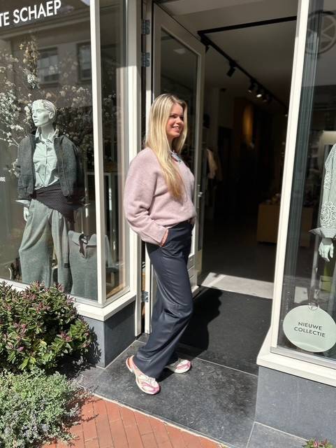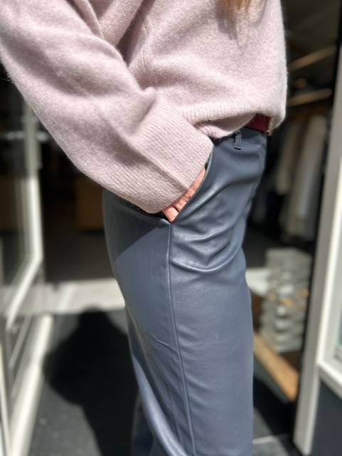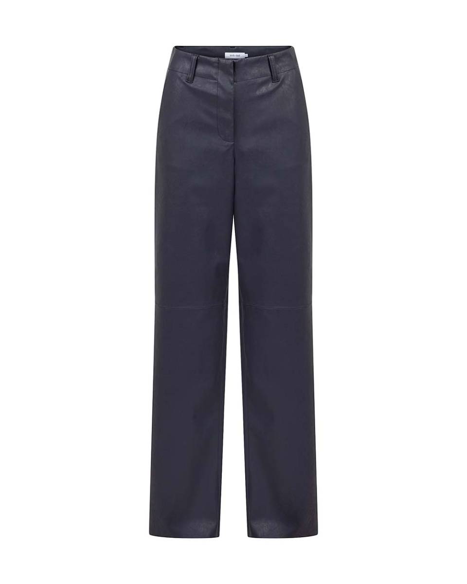 De Naomi leather look pant in de kleur night blue van Knit-ted biedt een elegante en moderne uitstraling. Deze broek past perfect bij elke gelegenheid, of je nu een dag op kantoor doorbrengt of een avondje uit gaat. De diepe blauwe kleur voegt een vleugje verfijning toe aan je outfit.