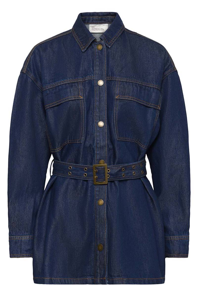 De My Essential Wardrobe Nessie 181 jas in donkerblauw is een perfecte toevoeging aan je garderobe. Met zijn tijdloze look en comfortabele pasvorm maakt deze jas elke outfit compleet. De stijlvolle kraag en de verfijnde knoopsluiting aan de voorkant zorgen voor een elegant en modern silhouet.