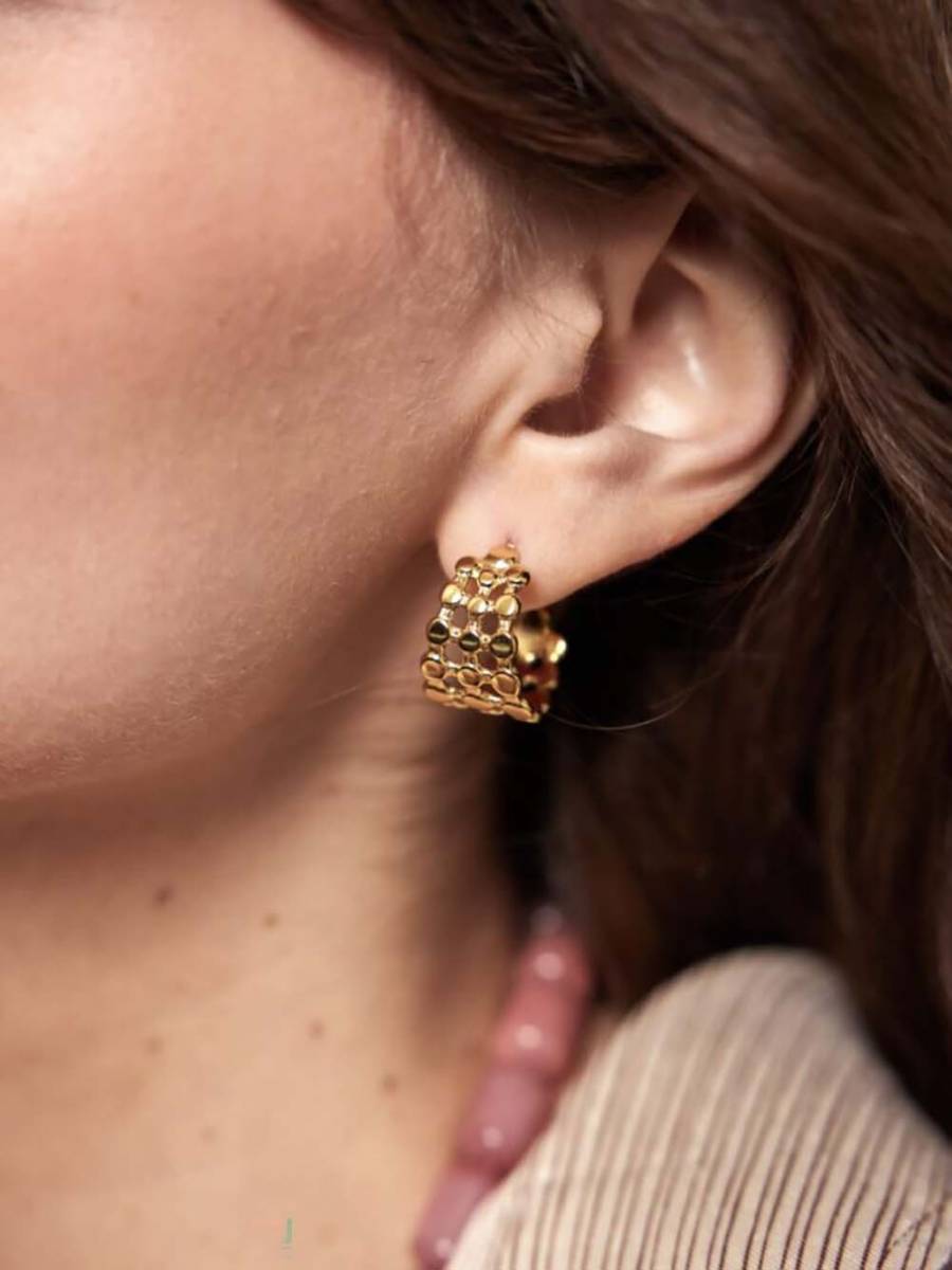 Deze oorringen zijn 100% nikkelvrij en verguld op longlasting stainless steel, wat zorgt voor duurzaamheid en een langdurige glans. Voor het behoud van de kwaliteit is het aan te raden om de oorringen niet bloot te stellen aan water of parfums. Bewaar ze bij voorkeur in een droge omgeving om zo lang mogelijk van hun schoonheid te genieten.