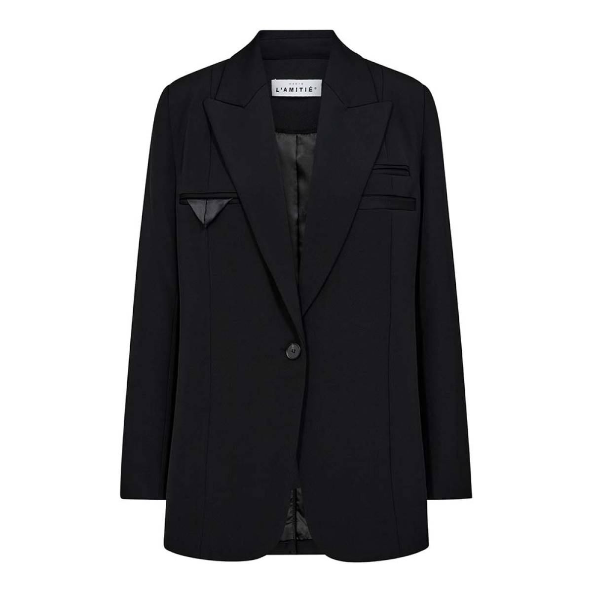 De Haute L’Amitie – Premiere oversize triangle blazer in het zwart is een verfijnde toevoeging aan elke garderobe. Deze blazer, met zijn moderne oversized pasvorm en elegante ontwerp, biedt zowel comfort als stijl. Het driehoekige silhouet voegt een unieke twist toe aan de klassieke blazer, ideaal voor zowel formele als informele gelegenheden.