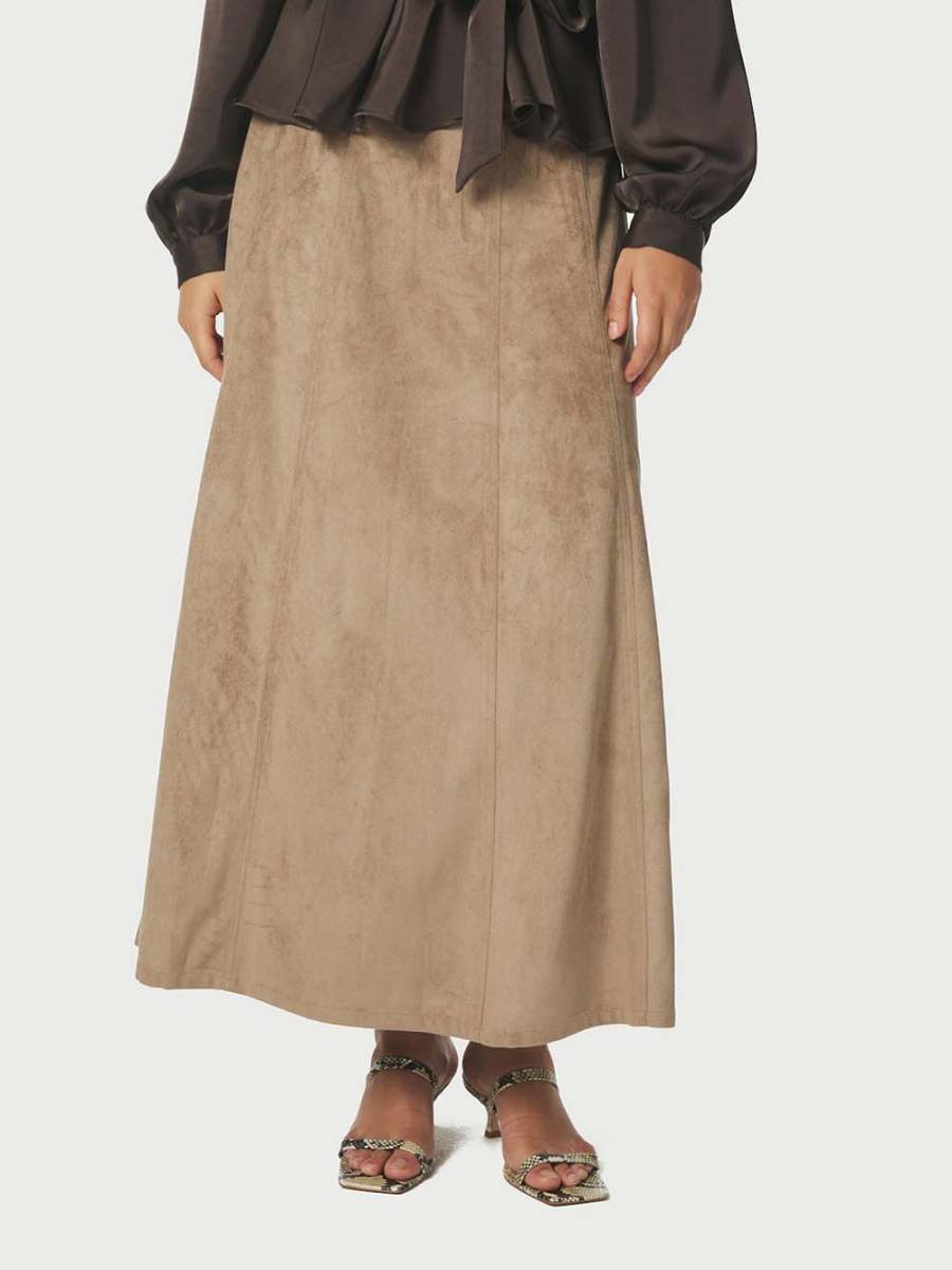 Raya Faux Suede Rok in Zand