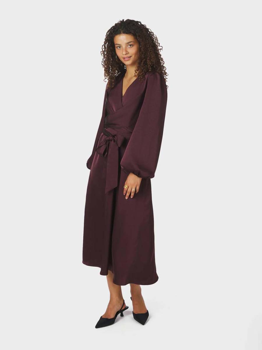 Rimini heavy sateen dress burgundy Neo Noir