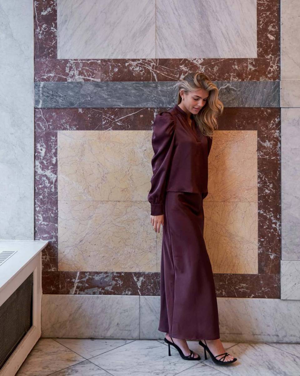 De NEO NOIR Rosslyn heavy sateen blouse in een prachtige bordeauxrode tint is een veelzijdig kledingstuk dat perfect is voor zowel formele als informele gelegenheden. Het satijnen materiaal zorgt voor een luxe uitstraling en voelt heerlijk zacht aan op de huid.