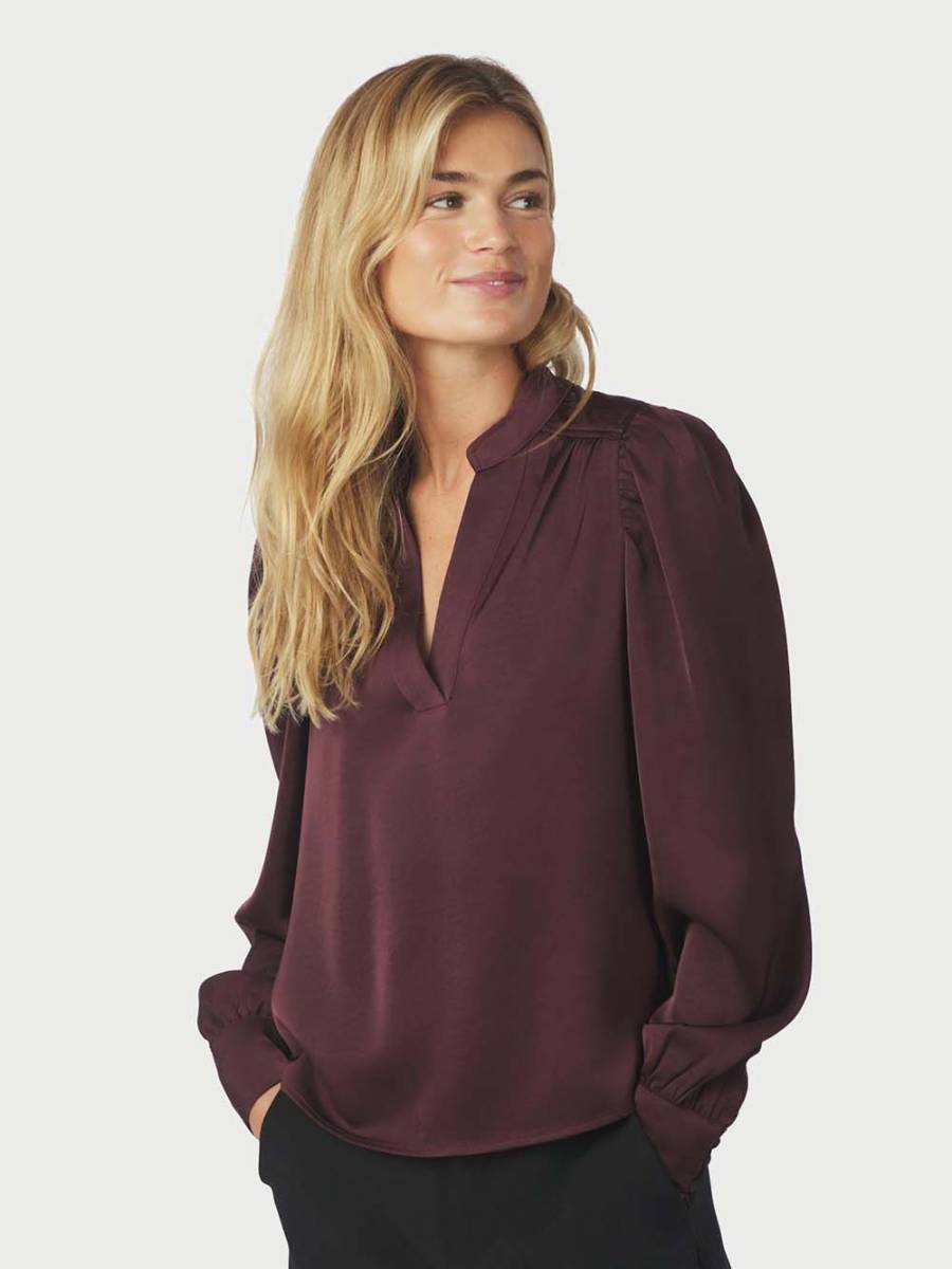 Rosslyn heavy sateen blouse burgundy Neo Noir