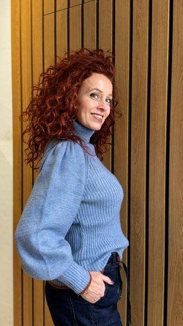 - Draag deze trui over een strakke zwarte broek voor een verfijnde en tijdloze look.