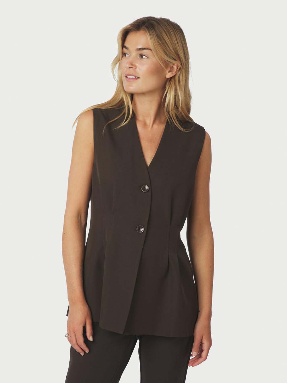 De Sanna drawstring blouse van Co’Couture biedt een perfecte mix van stijl en comfort. Deze elegante blouse is ontworpen in een diepe donkere bruine tint, die elke outfit een vleugje verfijning geeft. Dankzij de verstelbare drawstring is de pasvorm eenvoudig aan te passen voor een flatterende look.