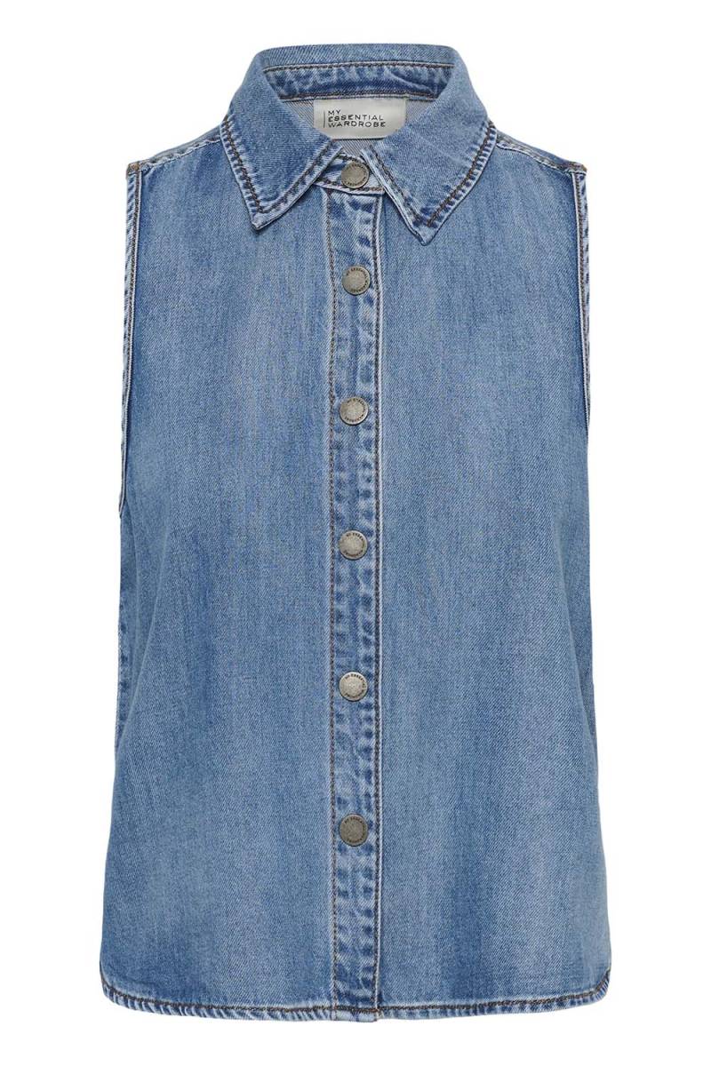 Ontdek de veelzijdige My Essential Wardrobe Sunna 171 jeans top in een stijlvolle medium clear blue tint. Deze mouwloze top, gemaakt van 100% katoen, biedt ultiem comfort en ademend vermogen. Een perfecte aanvulling op je garderobe voor een casual maar modieuze look.