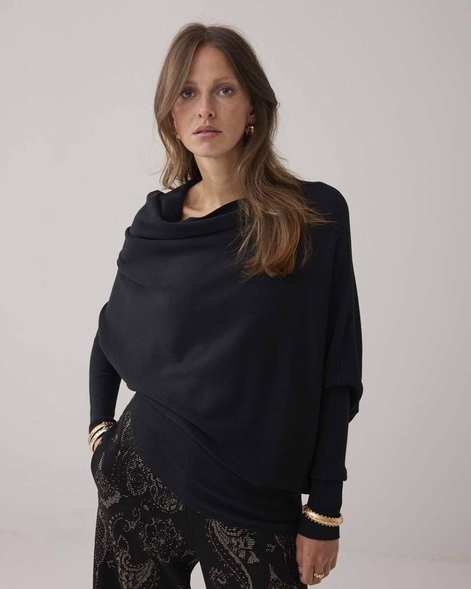 Deze elegante sweater van Summum Woman is een perfecte toevoeging aan je garderobe. Het ontwerp is uitgevoerd in een klassieke zwarte kleur, waardoor het veelzijdig te combineren is met andere kledingstukken. De subtiele details en de hoogwaardige afwerking maken deze sweater niet alleen comfortabel, maar ook modieus voor elke gelegenheid.