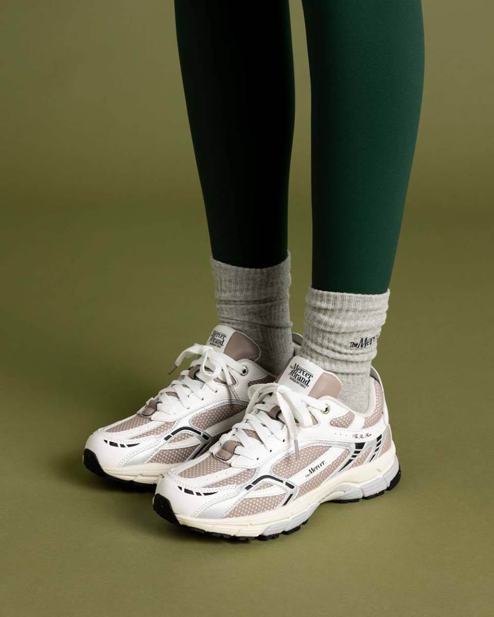 De MERCER AMSTERDAM The Re-Run sneaker combineert stijl en duurzaamheid. De sneaker heeft een opvallend ontwerp in wit en zilver met cognac details en is gemaakt van gerecyclede materialen, waaronder GRS-gerecycled leer en mesh. Met een comfortabele EVA-zool en gerecyclede binnenzool is dit de perfecte keuze voor milieubewuste fashionista’s.