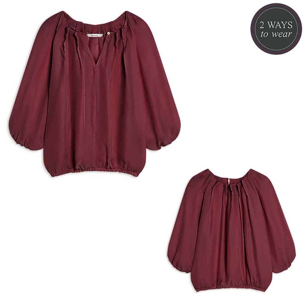 Deze schitterende top van Summum Woman in de warme kleur merlot is een must-have voor elke garderobe. Gemaakt van luxueus 100% cupro, voelt deze top zijdezacht aan en biedt het ultieme draagcomfort. Perfect voor zowel casual als chique gelegenheden, en eenvoudig te combineren met zowel jeans als rokken. Voeg een vleugje elegante klasse toe aan uw dagelijkse look met deze tijdloze en veelzijdige top.