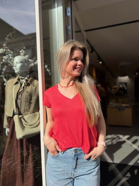 Voeg een vleugje kleur toe aan je garderobe met de fluo rode top van Noman’sland. Deze stijlvolle en comfortabele top is ideaal voor elke gelegenheid, of je nu naar kantoor gaat of een avondje uit plant. Gemaakt van hoogwaardige materialen voor een perfecte pasvorm. Bestel nu en maak een fashion statement!