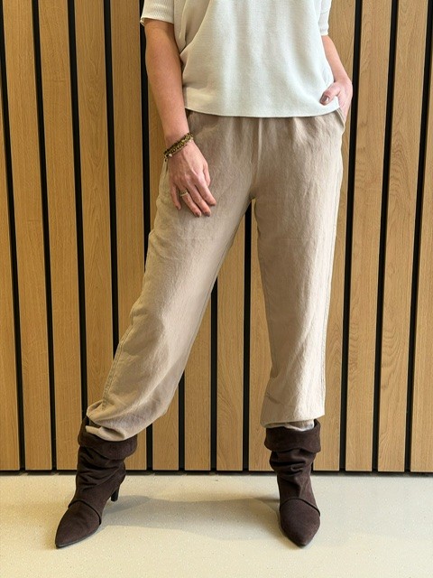 Ontdek de stijlvolle en tijdloze trousers van Noman’sland in een prachtige sesam tint. Deze broek combineert moeiteloos elegantie met comfort, waardoor het een onmisbaar item is in elke garderobe. De neutrale kleur maakt het eenvoudig te combineren met diverse tops en accessoires, van casual T-shirts tot formele blouses.